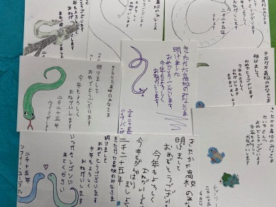 生徒たちは、ウィルソンビル高校からの年賀状を手にして、とても喜んでいました。